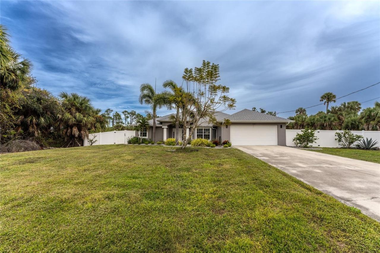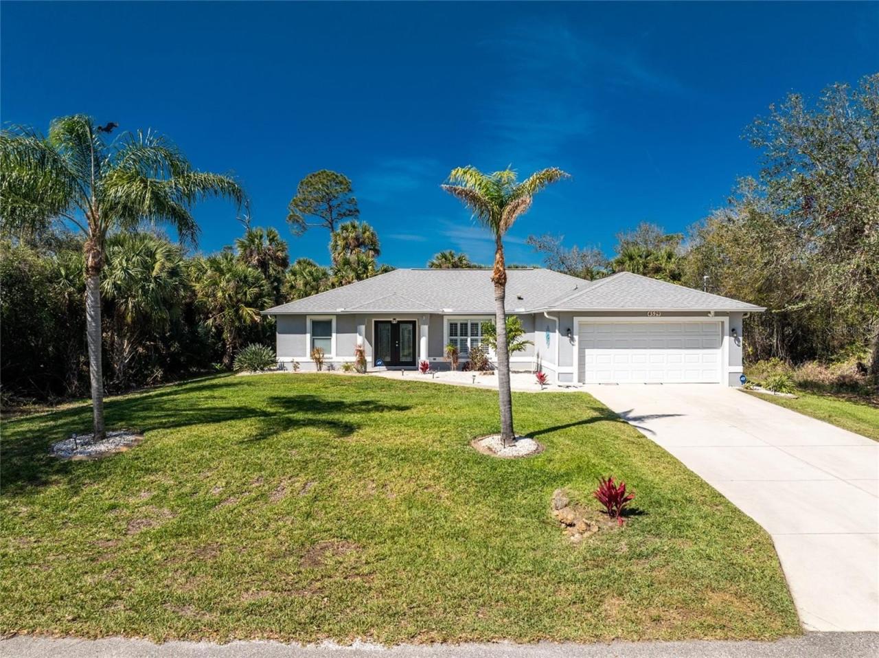 Home is nestled on 3 expansive lots | as you enter thru the front door you will be greeted by an inviting view of the pool (built in 2016) with an enchanted background of many mature palm tress in a quiet neighborhood partially fenced | New roof in 2022, no flood insurance or HOA required | home offers a feeling of warmth by design inside and outside | Entire house has a meticulously renovated luxury wood design laminate flooring in all rooms offering a modern style with overall functionality | Home design offers a living room and a family room both equipped with sliding glass doors leading to the spacious lanai and pool with a